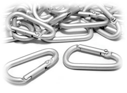 Karabina vhodná na výrobu přívěsku např. ke klíčům.