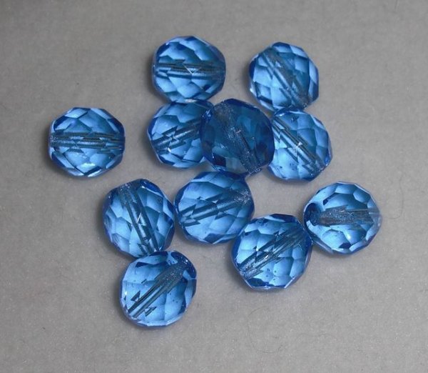 Korálky broušené/ohňovky - modrá světlá > Ø10mm (10 kusů)
