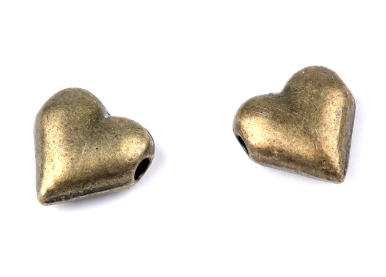 - Kovový korálek srdce 8x8 mm - zlatohnědý