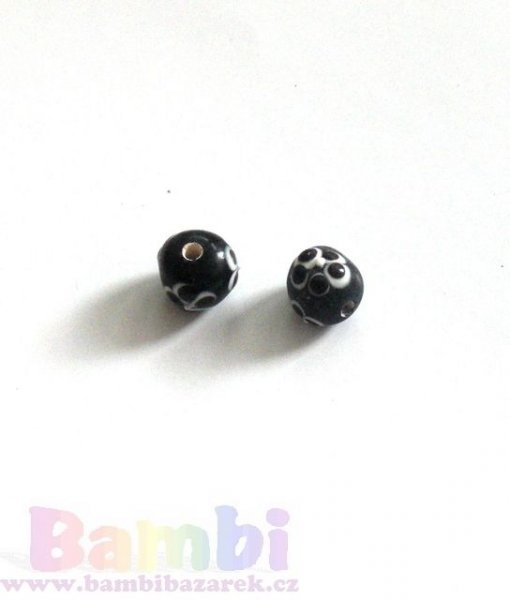 - Vinuté perle - kulička s kytičkami - černá Ø10mm