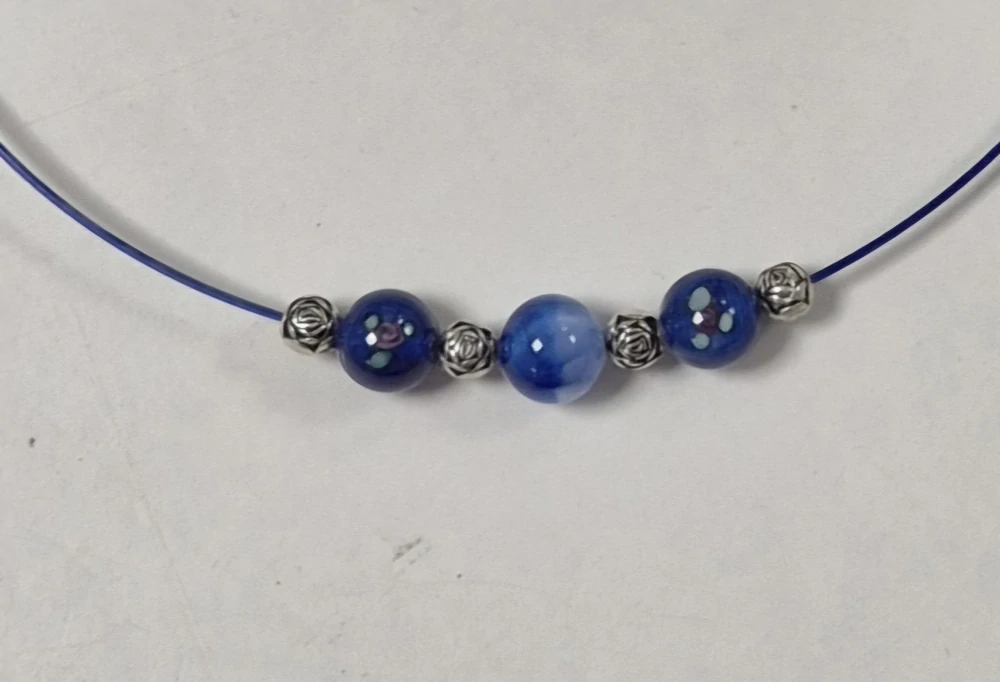 - Náhrdelník na lanku s vinutkami - modrá tmavá
