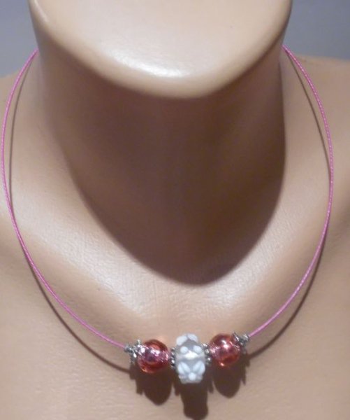 - Náhrdelník na lanku s vinutkami - růžovobílá