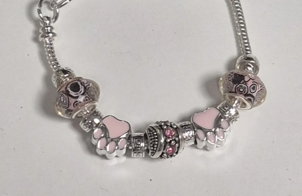 - Náramek hadí ve stylu PANDORA - růžová tlapka