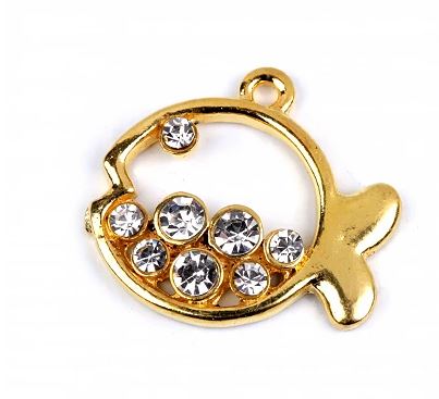 - Přívěsek kovový - rybka s kamínky 18x19 mm