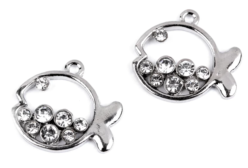 - Přívěsek kovový - rybka s kamínky 18x19 mm