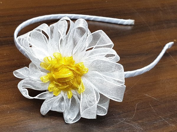 - Saténová čelenka s květem - bílá/žlutá