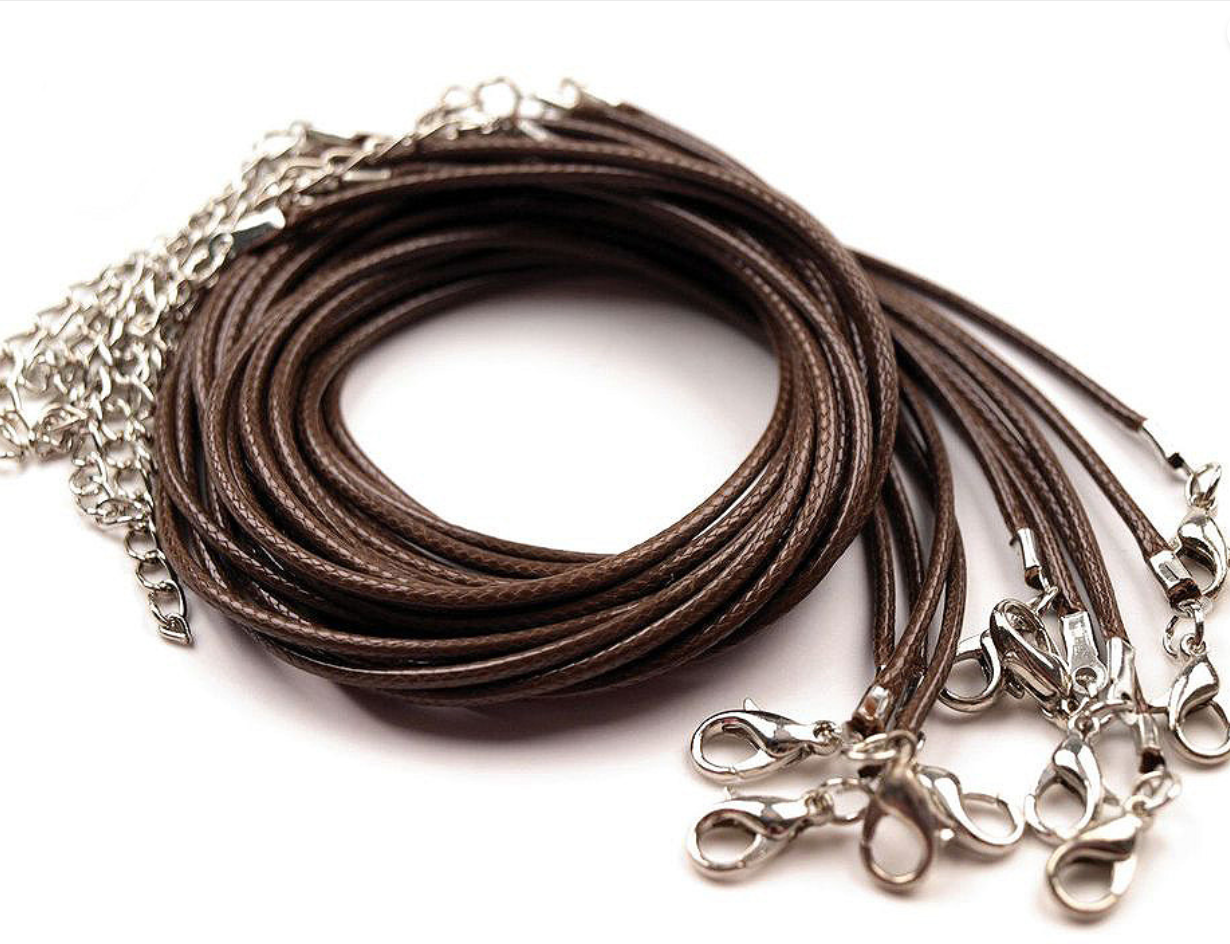 Délka 45 cm + 5 cm adjustační řetízek. Karabinka 5 x 10 mm. Šňůra Ø1,5 mm. V případě, že přívěsek nebude možno díky koncovce navléci, tak lze kleštěmi pružinovou koncovku rozevřít, navléci přívěsek a opět koncovku uzavřít.