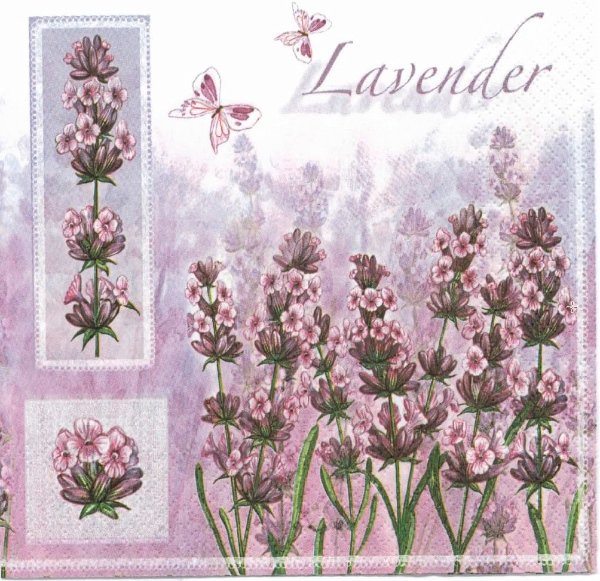 - Třívrstvý ubrousek na decoupage - levandule - s motýlky