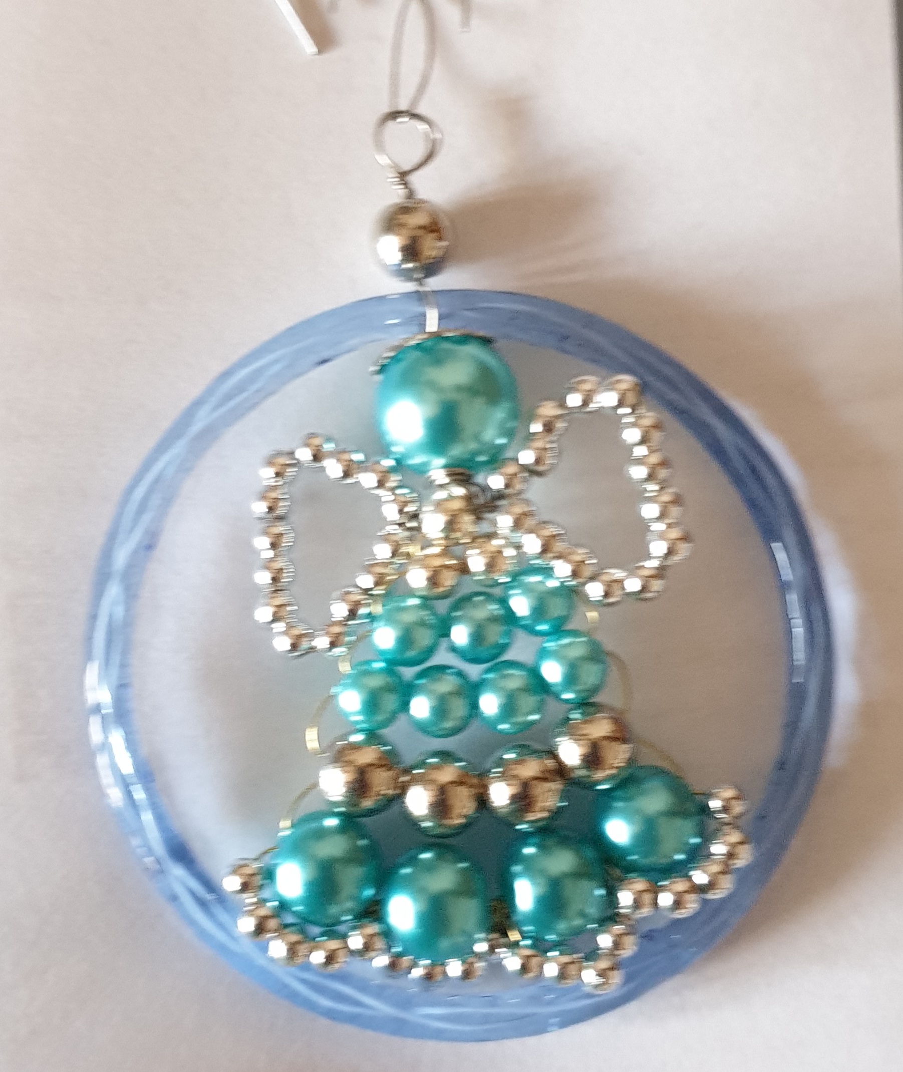 Ručně navlékaná vánoční ozdoba z korálků inspirována tradičními vzory vánočních ozdob vyráběných v první polovině minulého století.